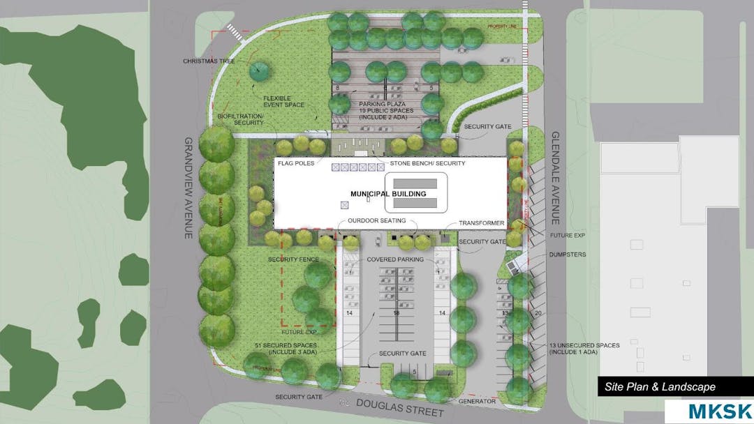 The Parks & Recreation department has now occupied their new facilities in McKinley Field Park. The existing Grandview Center at 1515 Goodale will remain standing as temporary space for the City's Finance Department and Public Meetings, while Phase One of the new Fire/EMS, Police, and Administrative Services facility is built directly to the south. Interim provisions will be made for Finance and Public Meetings during an anticipated temporary transition period near the end of construction so that the prior Grandview Center can be removed in the summer of 2025 to allow final site improvements to be completed.
